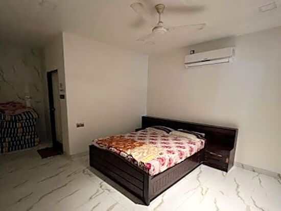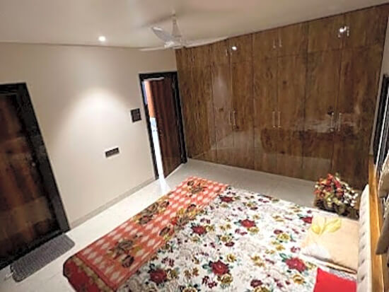| Bedroom One | Ground floor Master non Ac bedroom bedroom with attached bath, wadrobe with dressing mirror. Sleeping is on the queen size double bed and ample space for extra mattresses. |