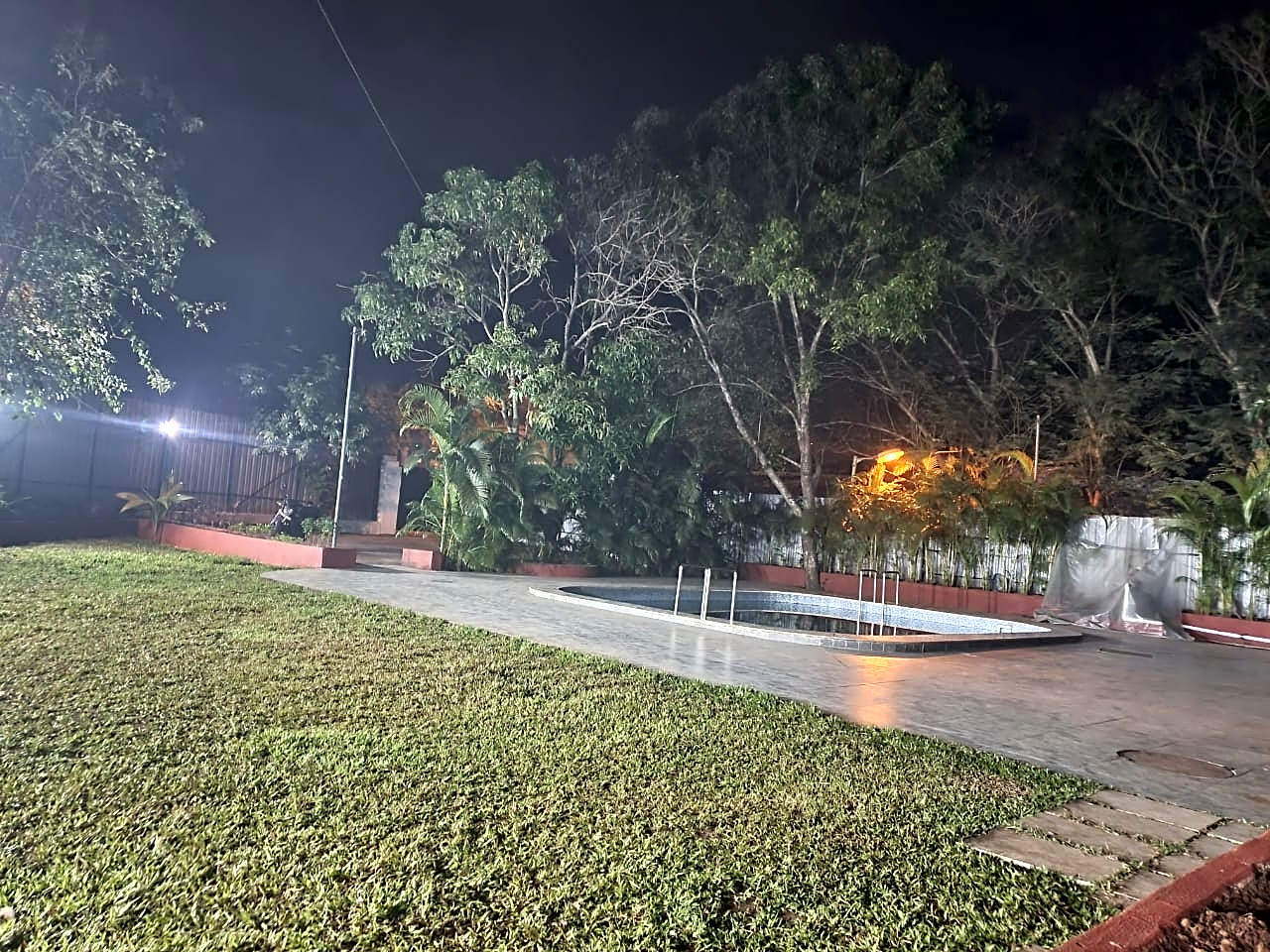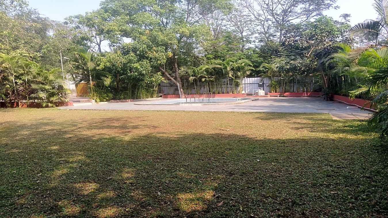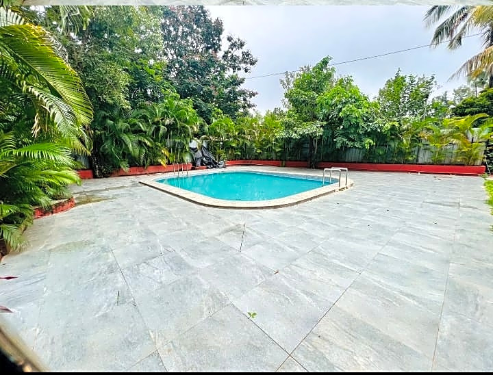 Outdoor space is tiled and has lawns. The outdoor pool and lawns are a perfect settings for a barbeque and bonfire to enjoy the chilled night Yeoor weather. It has a outside sitout area.